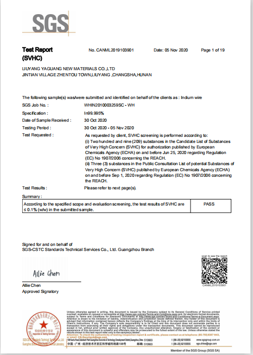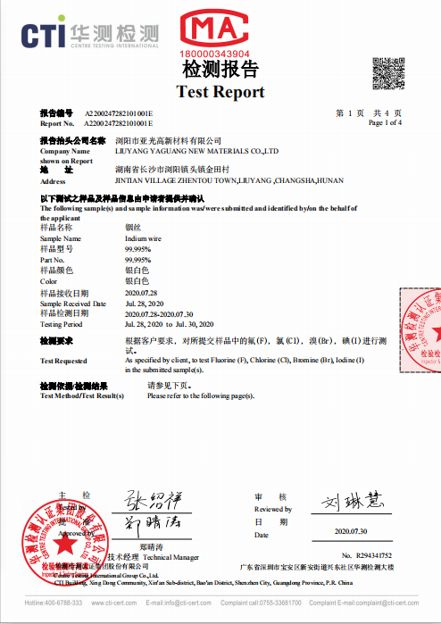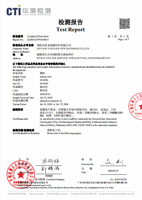 我公司是一家專業(yè)生產(chǎn)銦制品的廠家,通過了SGS認(rèn)證,經(jīng)CTI華測(cè)檢測(cè),質(zhì)量好,放的心的產(chǎn)品,歡迎前來(lái)洽談采購(gòu)!